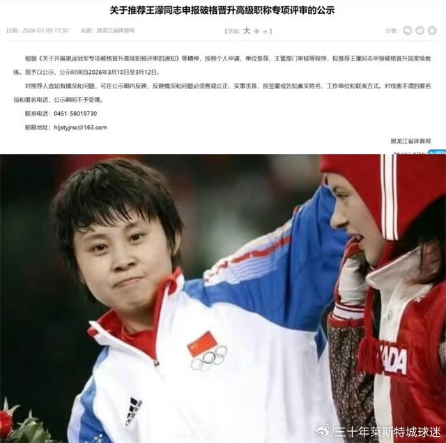 很多人认为即便王濛有雄心壮志,但以她的性格可能很难被接受。但在3月9日,黑龙江省体育局公示了推荐王濛同志申报破格晋升高级职称专项评审,按照内容显示,王濛申报破格晋升国家级教练。在这个特殊时刻,王濛获特殊提拔,也被认为是其重返中国短道速滑国家队的信号!