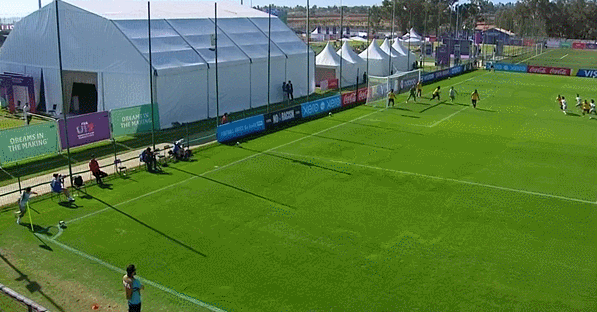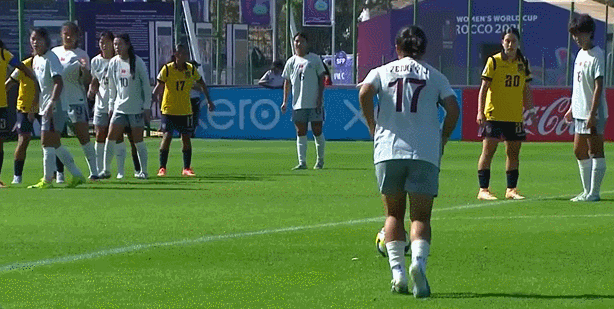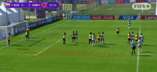 第16分钟,曾屹婕主罚任意球直接攻门,皮球越过人墙飞入球门左上角。
